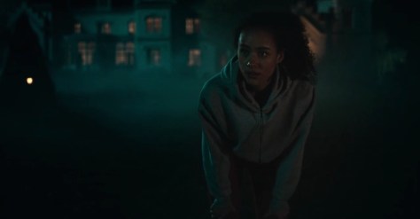 Which is why Evie feels greater affinity with the serving staff when she first arrives, including Carol Ann Crawford’s Judi Dench-like Mrs. Swift, than she does the overlords of the estate. With her own current catering career, and given her people’s ancestral history as domestics and caregivers, maids and mammies, in Western society, Evie’s seemingly the only person with the empathy to see how badly the staff is being treated by Sean Pertwee’s lordly upper butler, Mr. Renfield, who drills them like a martinet, the way Christopher Plummer did his children in The Sound of Music. He likewise disrespects her initially, before discovering she’s a guest for the weekend, rather than another server, as he’d first assumed, based on her skin tone. The immediate bond Evie forms with the help (“If we don’t help each other out, who will, right?”) recalls Kaluuya’s own in Get Out, the gardener and maid there being the only other blacks in the vicinity he felt a connection to. In The Invitation, this bond is made explicit when Walt assures Evie, “For someone of your… background, surely (unholy matrimony to him) is more than a leg up,” before sinking his teeth into the fibula of the helpless maid right beside her.