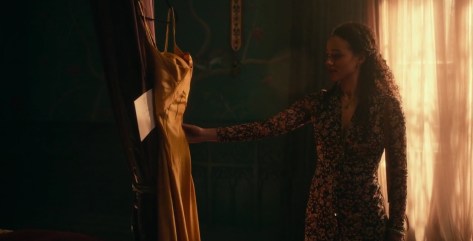 ‘Out with the old, in with the new.’ Unfortunately, the nourishing new wellspring to be tapped that she represents, also evokes the indigenous lands her ancestors originally hailed from. Those lands that were likewise exploited and raped by imperialists and colonialists of the natural resources they had to offer (“They’re racked with colonial guilt… leopards don’t usually change their spots.”). So, by the time incendiary firebrand Evie is demonstrating her Matrix-style upswoops, it all seems to the purpose of pulling down the historic pillars of aristocratic privilege that have been holding her people in bondage for millennia. Symbolically, she’s burning to the ground the past she’s chained to, insubordinately pursuing a scorched earth policy, like Kerry Washington at the end of Django Unchained (“I hope you all burn.”). Proving you just can’t take black folk nowhere.