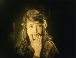 One of Gish’s most harrowing moments on film, her acting is so intense there’s little wonder the pitch of hysteria she hit shook everyone during filming, even making a visiting Variety reporter violently ill. By the early ‘20s, the scene had already become legend. Quoting Frederick James Smith, in the May 1923 issue of Photoplay, “When the Broken Blossoms scene in the closet – still the screen’s highest example of emotional hysteria – was shot in Los Angeles, the screams of Miss Gish, alternating with the cries of Griffith, could be heard in the streets outside. It required most of the studio staff to keep the curious from trying to invade the studio.” According to anecdote, Gish took the startled set by complete surprise, by throwing everything she had into the scene. But interestingly, years later, co-star “Barthelmess report(ed) that her hysteria was induced by Griffith’s taunting of her… (Yet) no matter how it was achieved, the result is memorable, one of the privileged moments of Gish’s career.”