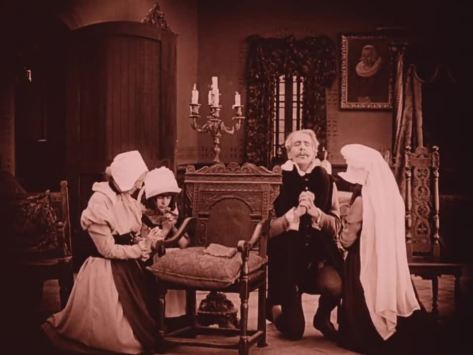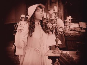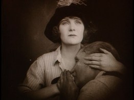 Described by poet Vachel Lindsay as “madonna in an art as wild and young as her sweet eyes,” Griffith took this assessment to heart, presenting Mae Marsh as the spiritual descendant of the blessed mother, pure and ethereal. When her character prays in close-up, the soul of simplicity, she may be interceding with the Almighty himself on mankind’s behalf. In his deification of the Virgin, Griffith weaves visions of the eternal mother throughout the film, starting with a stone carving of the Babylonian goddess Ishtar nursing an infant, and later capturing in identical posture the Virgin Mary statue hammered into poultice by irate Huguenots. Much as we see the Mountain Girl defer to an idol of her goddess kept in a small shrine to the right of the screen, Dear One prays to the Madonna from a similar place of prominence residing off to the left. Finally, in the Christ tale, this religious icon appears to have come to living, breathing life (Lillian Langdon), freely moving about of her own accord like Pygmalion.