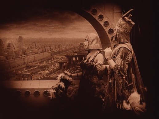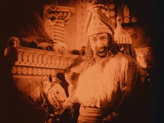 Babylon’s Prince Belshazzar (Alfred Paget), made up to resemble Christ himself, is likewise depicted as an “apostle of tolerance and religious freedom,” so broad minded he can release the fiercely independent Mountain Girl from bondage, earning her undying devotion, and convert to the religion of his Princess Beloved (Seena Owen), venerating Ishtar, a fertility goddess. It’s his very enthronement of this foreign, female idol, throwing over the patriarchal pantheon at whose altars the cult of The High Priest of Bel-Marduk (Tully Marshall) worships, that throws Babylon into ferment and turmoil.
